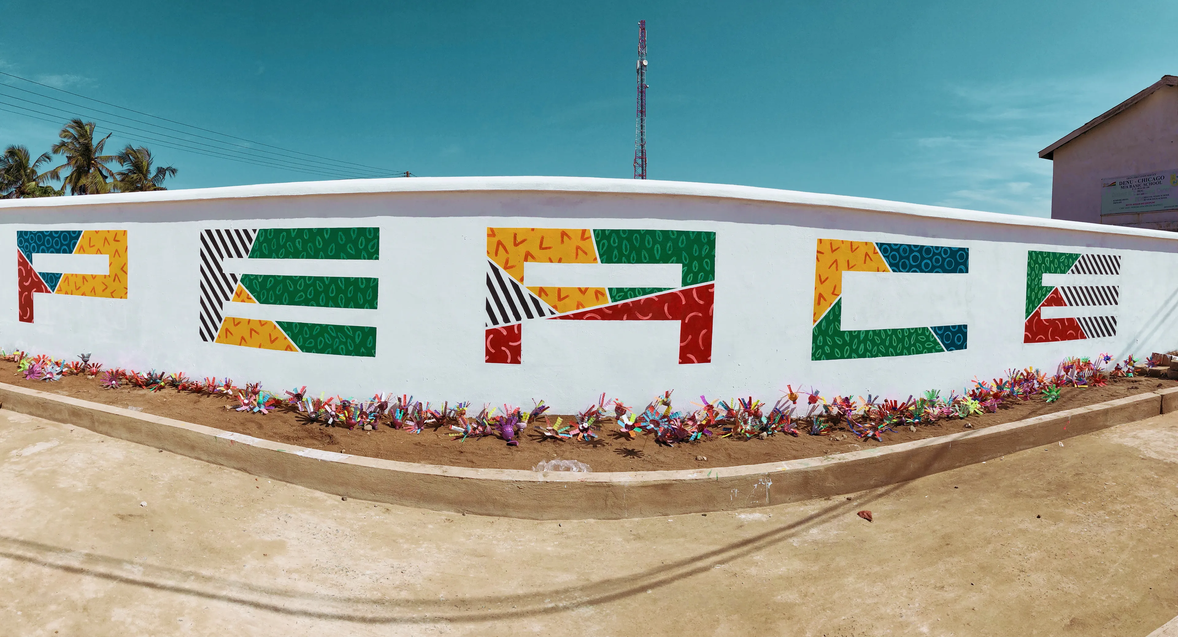 As part of the project, I created a 30x3 meter mural on the school’s wall, reflecting the school’s core value: PEACE.