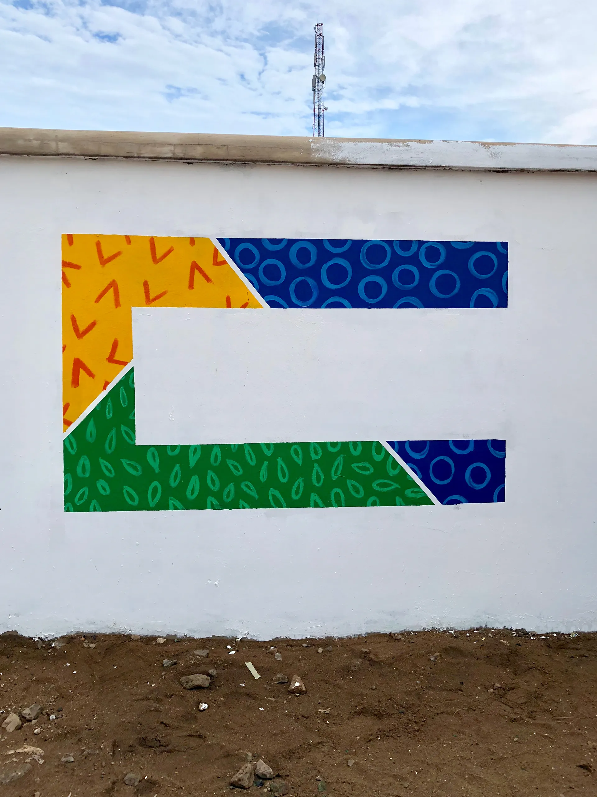 The artwork was developed in collaboration with the local community and aims to bring hope, color, and meaning to the everyday environment of the children.