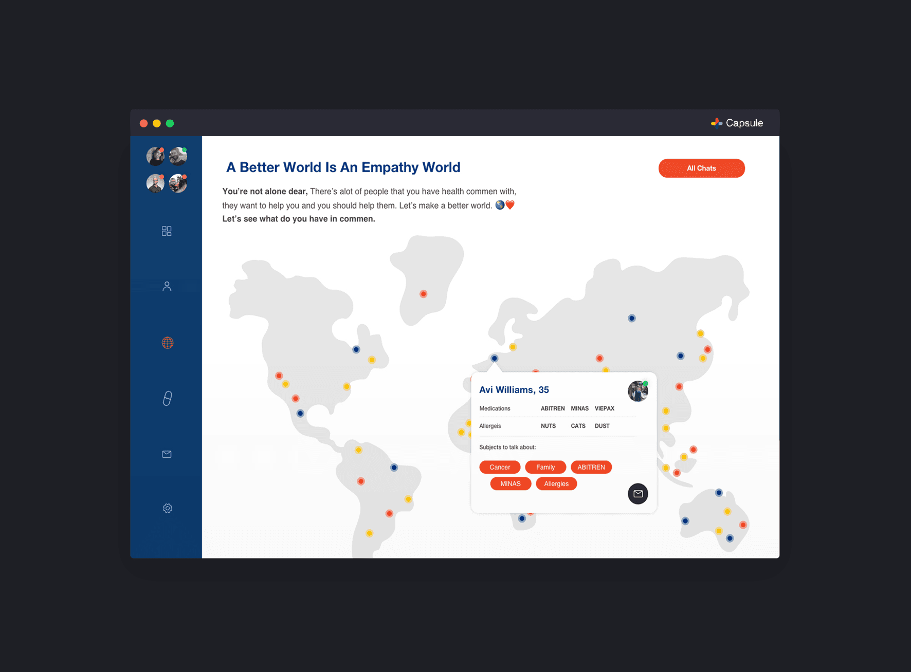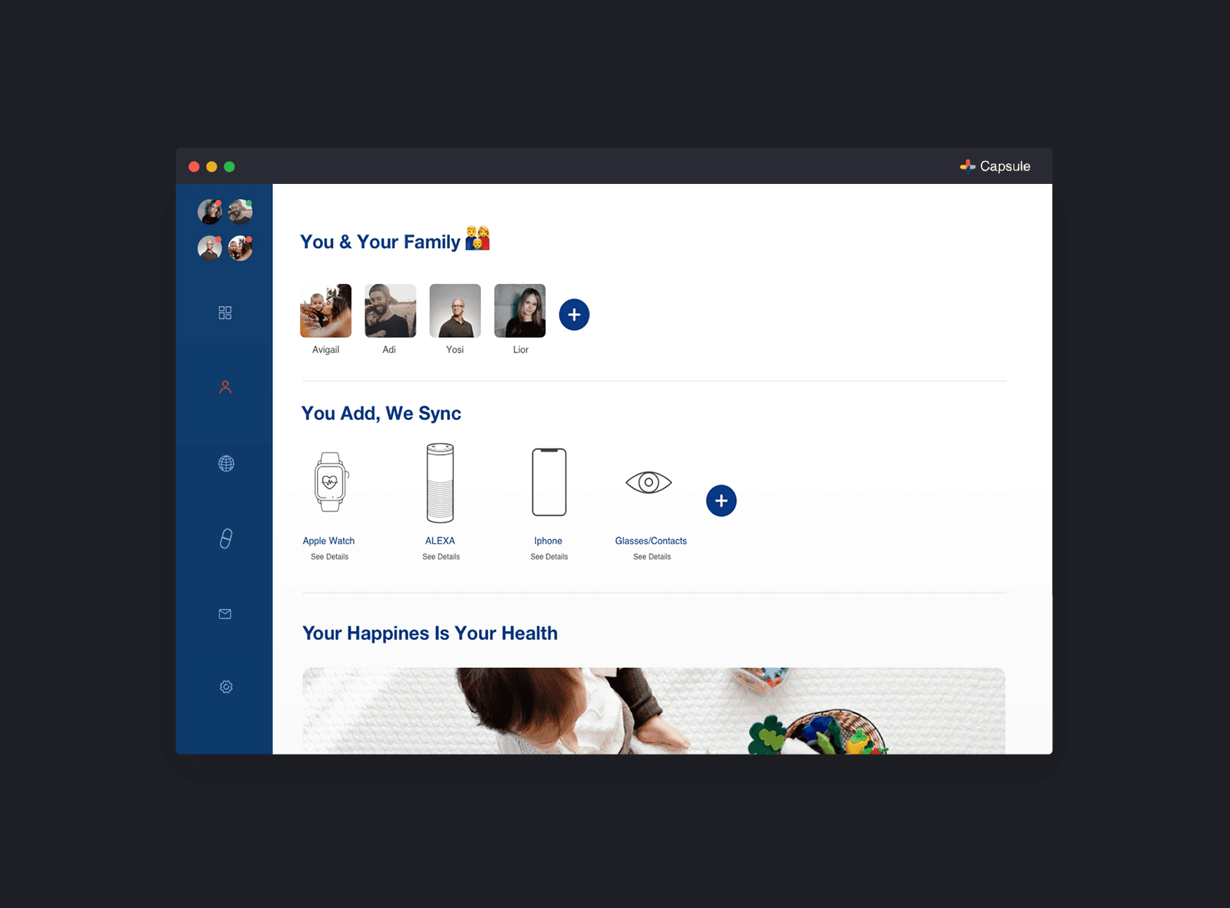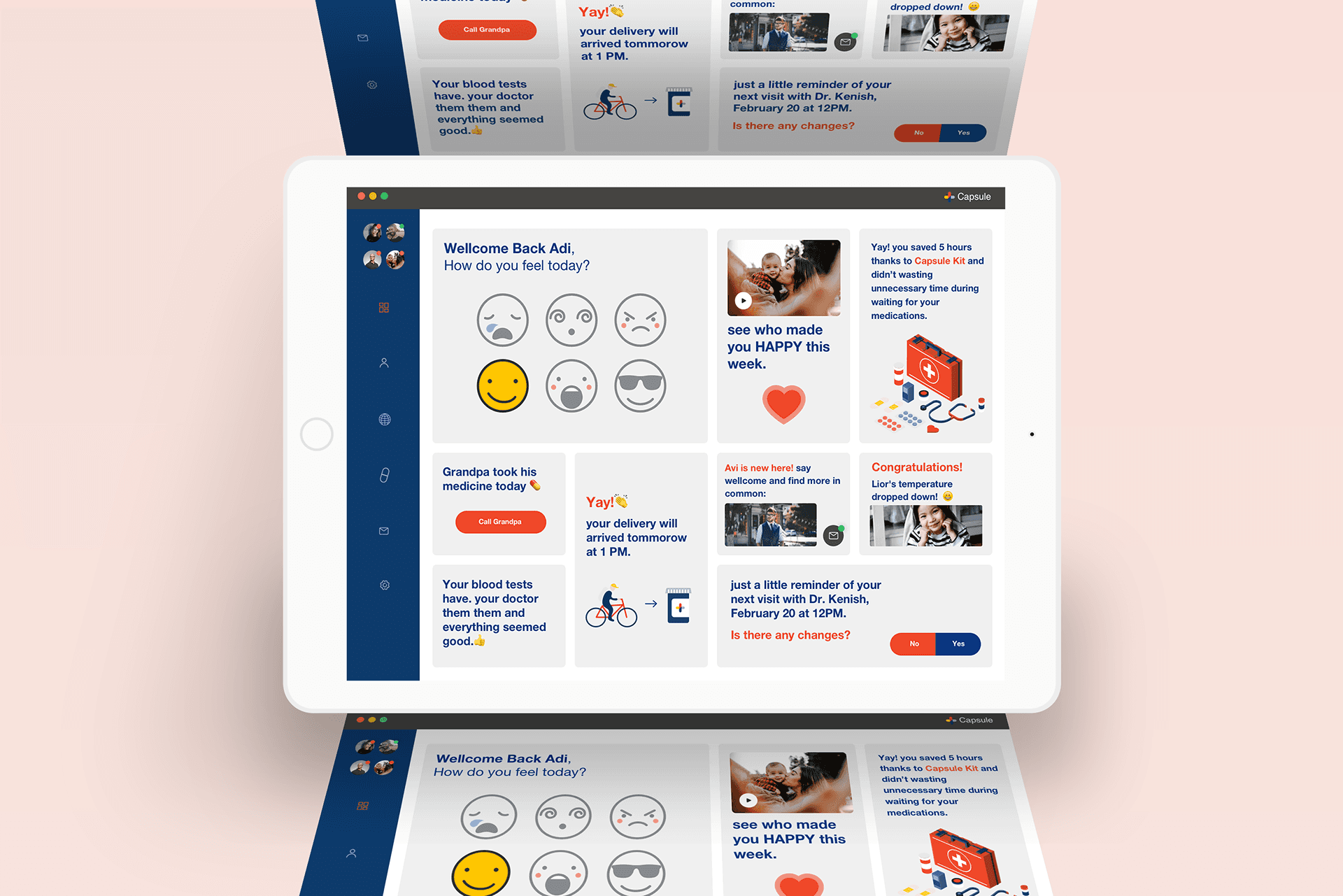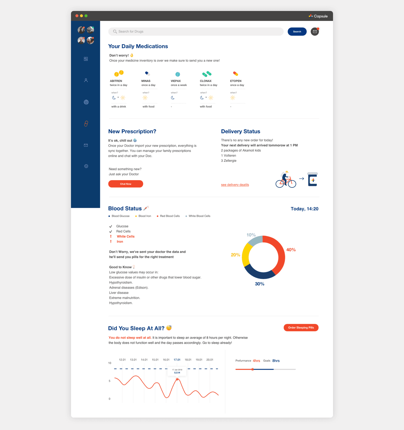 we chose the Capsule site - new kind of pharmacy, prescription delivery service, which is located in the United States, we create a simple system that summarizes all the medical events and advances that have taken place for you or your family this week, have added various features that are relevant in the world of innovative medicine. The app will recognize your health status up to the smallest details, take care of the relevant medications and also as a social community that helps you find more and more people with the same health issues and share between them treatments and medicine reviews.