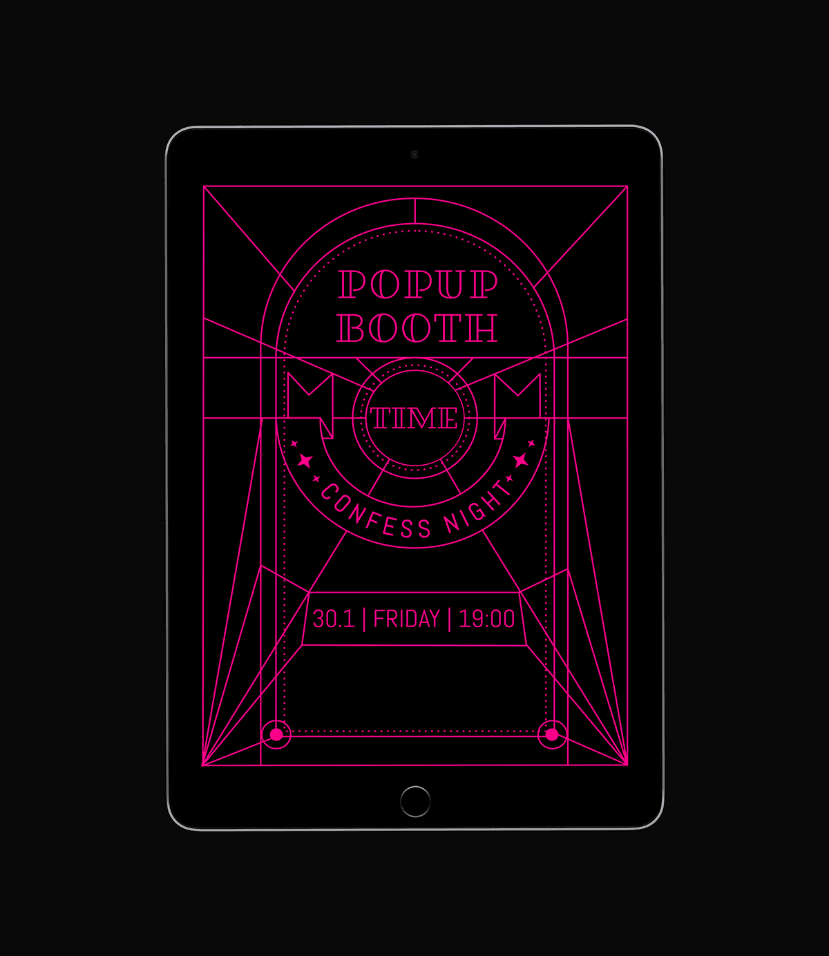 The language takes inspiration from the nightlife, the neons, the urbanism, and on the other side from the worlds of the church and the vitrage, which delineate the language.