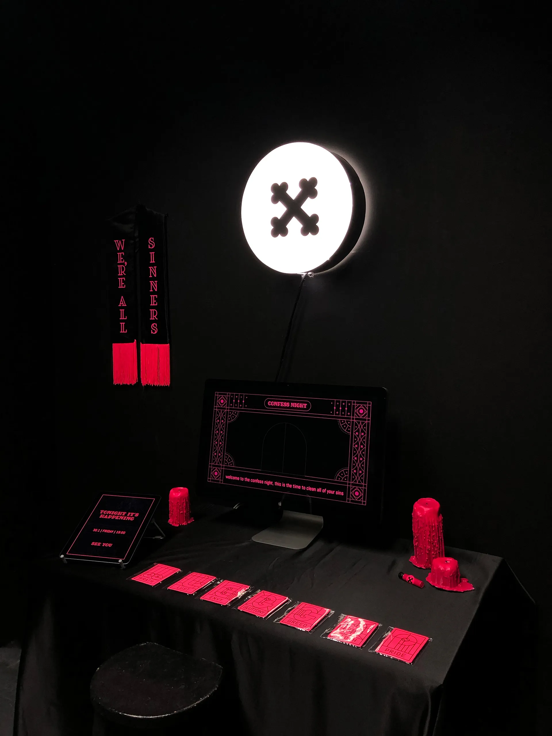The confessional process takes place from the dark until the next day, a process in which one confesses to another in the world. The boutique is located in major cities around the world, such as New York, Tel Aviv, Berlin and more, and provides an opportunity to confess your sins regardless of religion, race or gender.