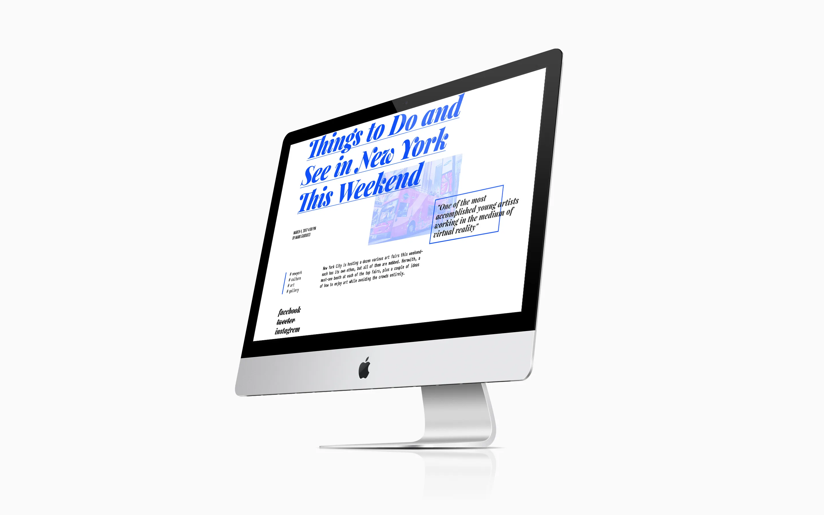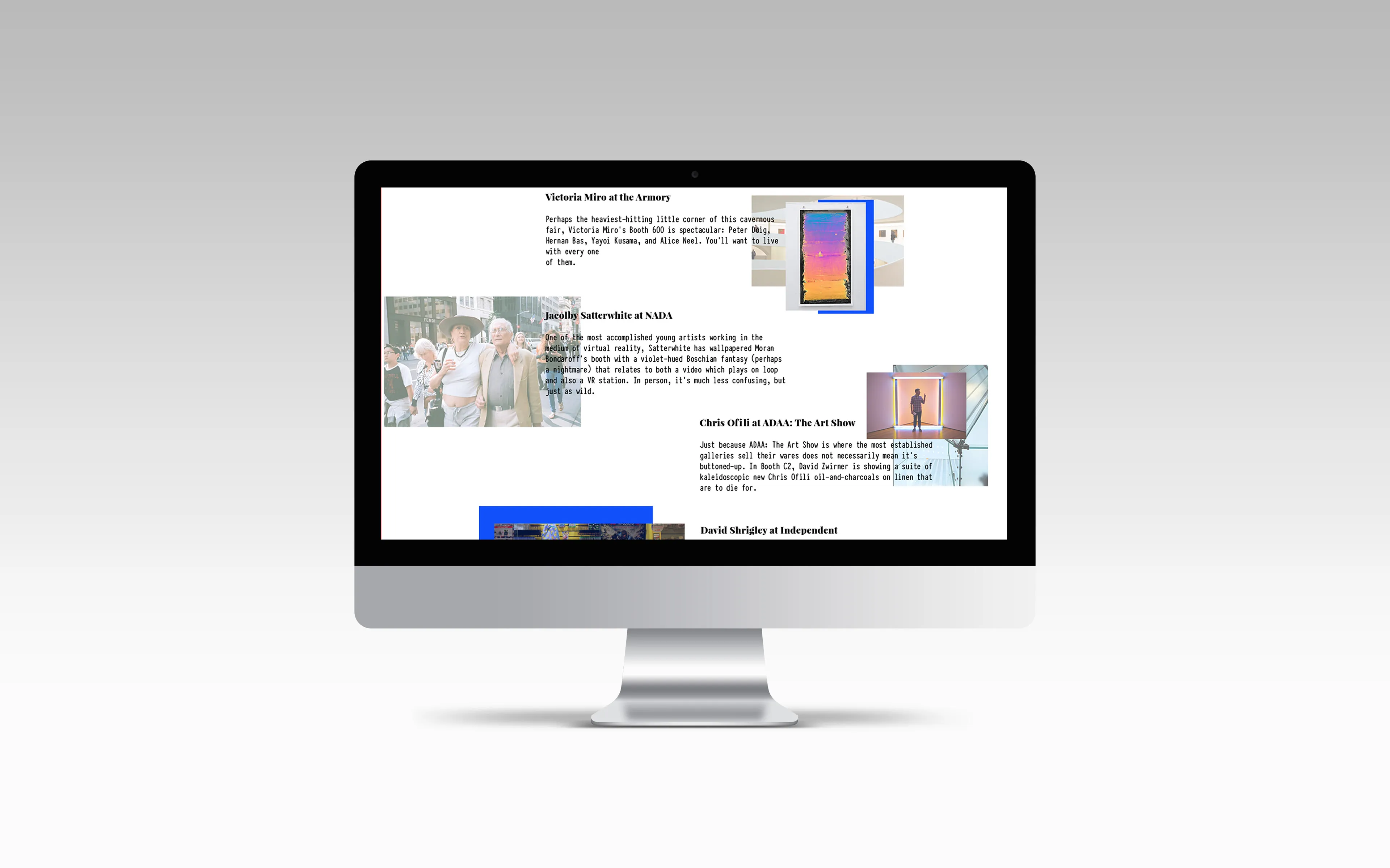 The site showcases famous contemporary art works from around the world and provides information about the artists behind the scenes. It also features articles regarding issues in the art world, while trying to immerse the viewer in the exciting world of contemporary art.