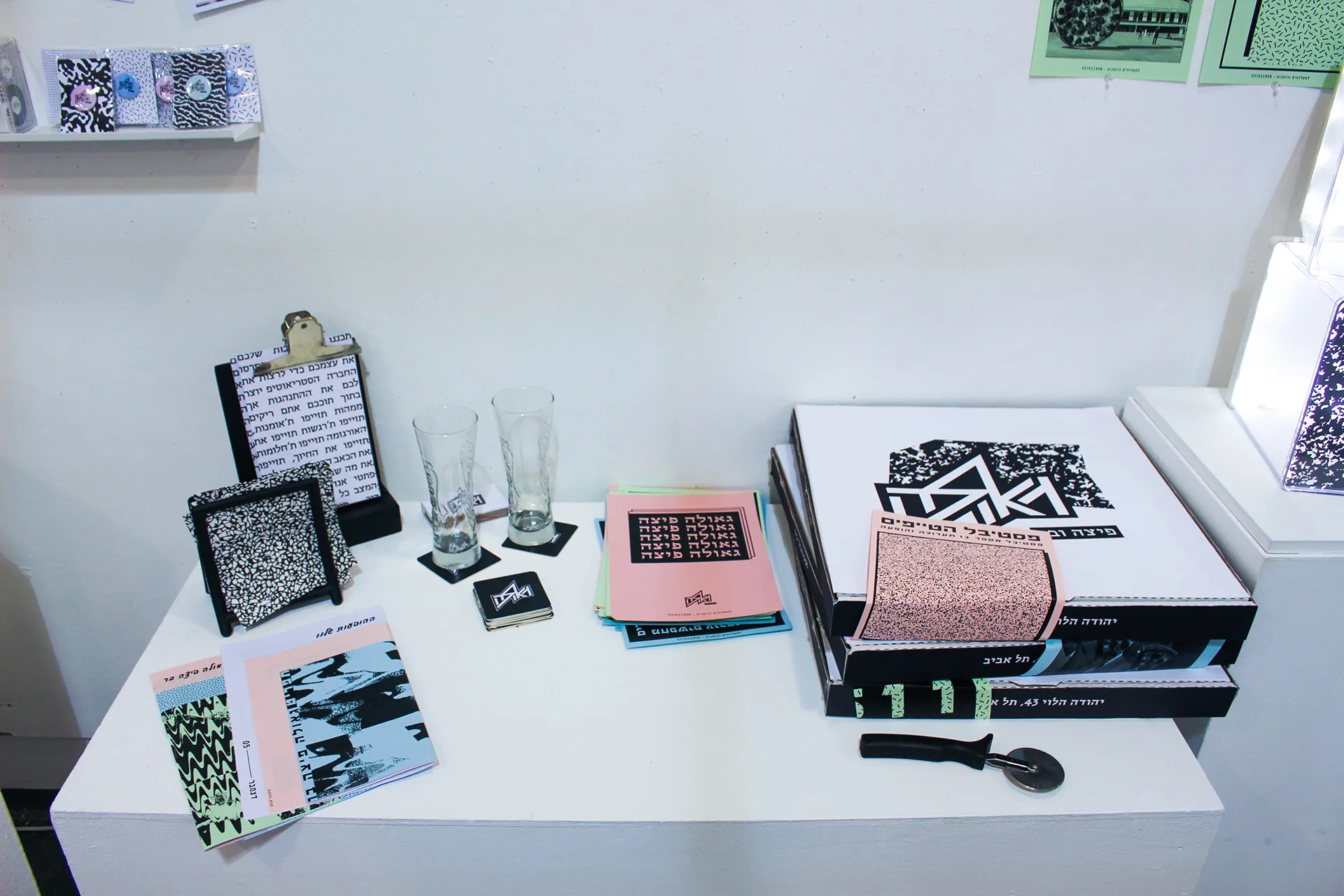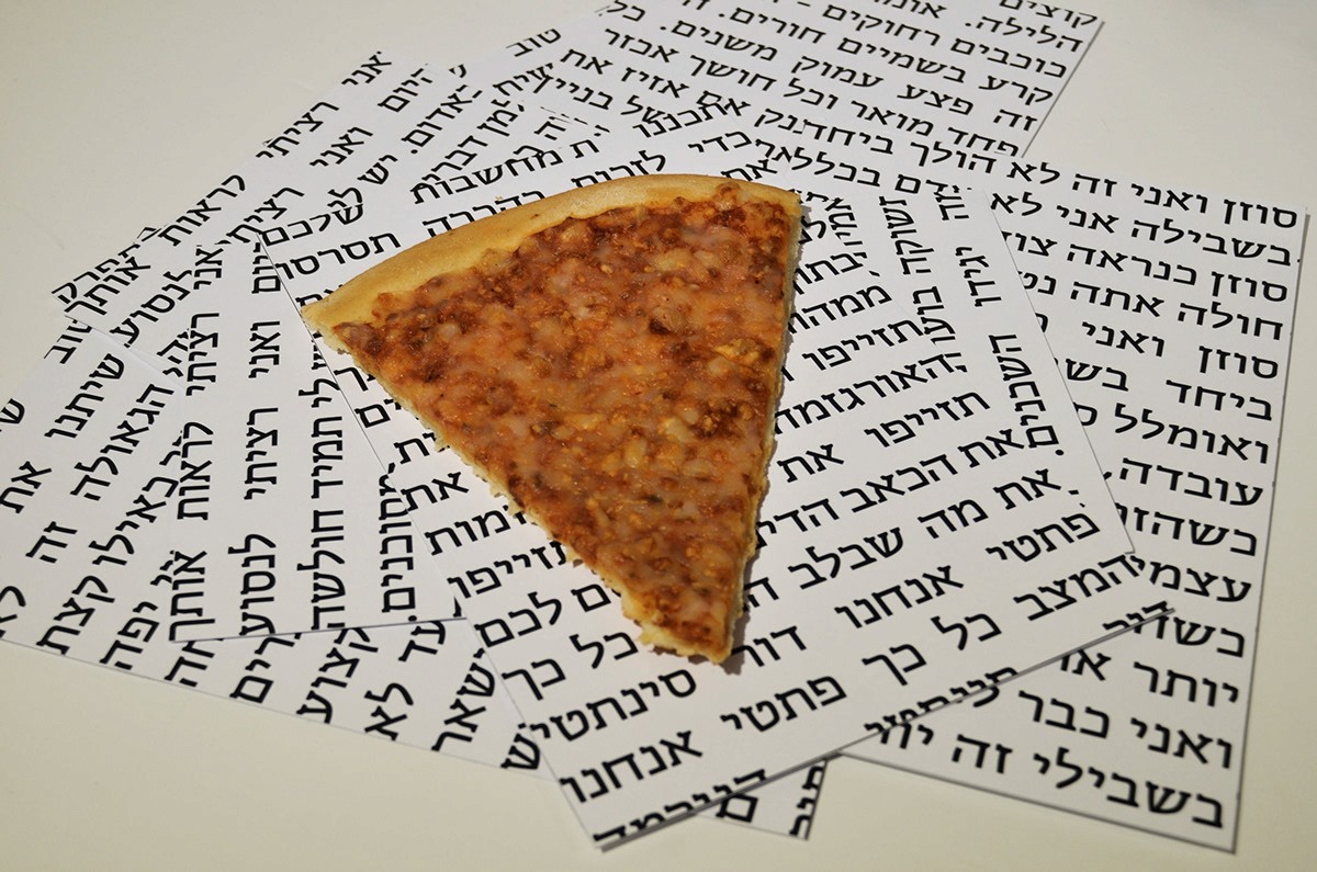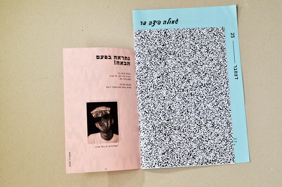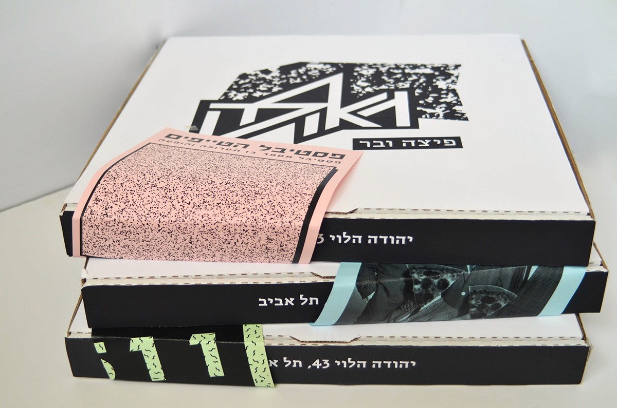The language also involves layers and patterns of the pizza toppings and also the punk favorite cloths. I chose to do all of the branding in Hebrew and i focused on the late 70’ and early 80’ around the well known club name ‘’penguin’’ and the ‘’Dan Cinema’’ movie place. The punk culture in israel is different from the rest of the world. I studied close about the period and the israeli punk bands who involve in their songs political messages that refers to freedom, redemption and salvation( all connected to one word - Geula. My challenge was taking all this language and time zones and turn in into something modern, that fits the present, but still not taking it to commercialized places, and not for profit interests.