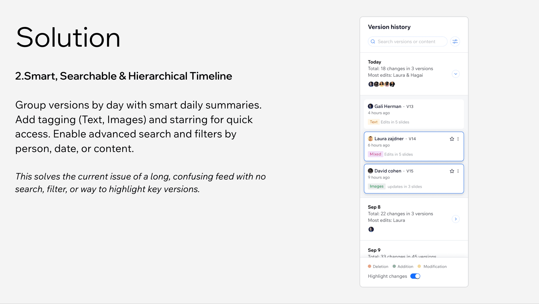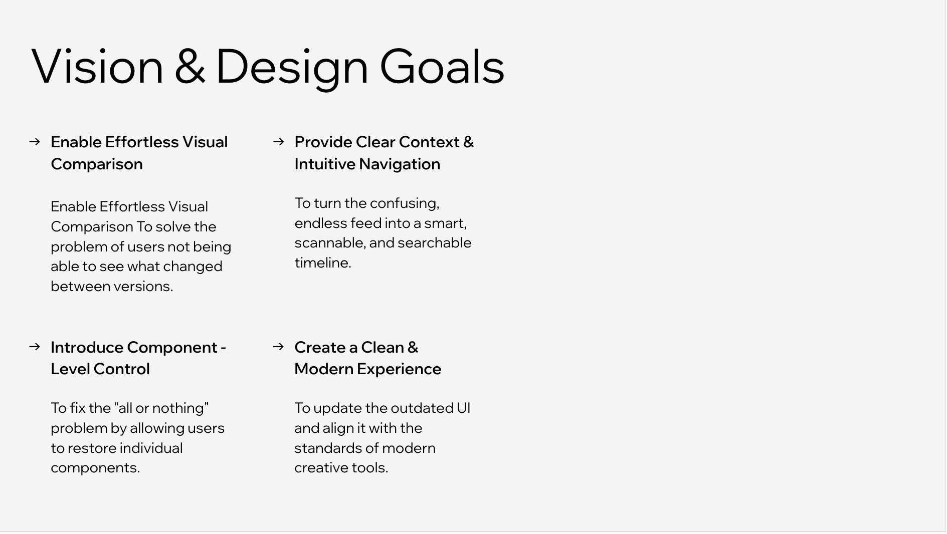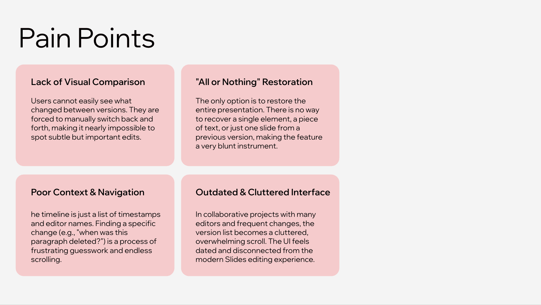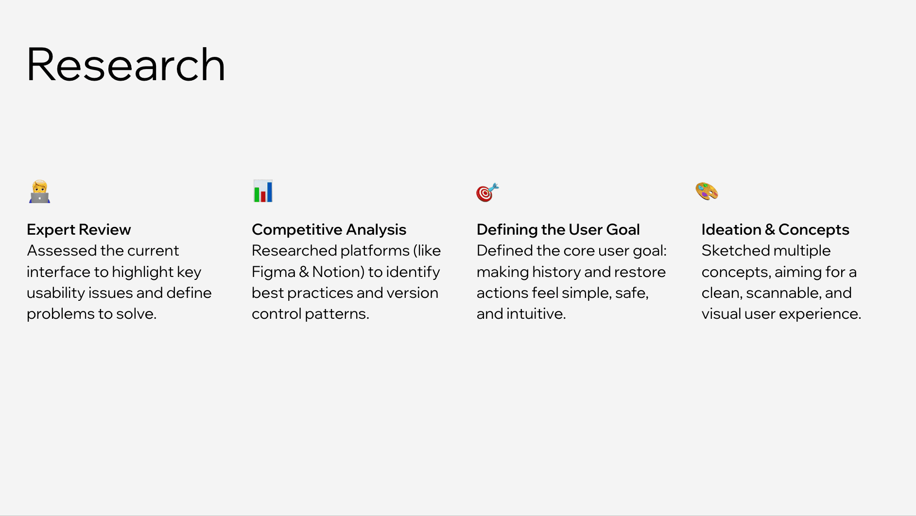 I redesigned Google's version history experience to improve clarity, scannability, and decision-making in high-density workflows.