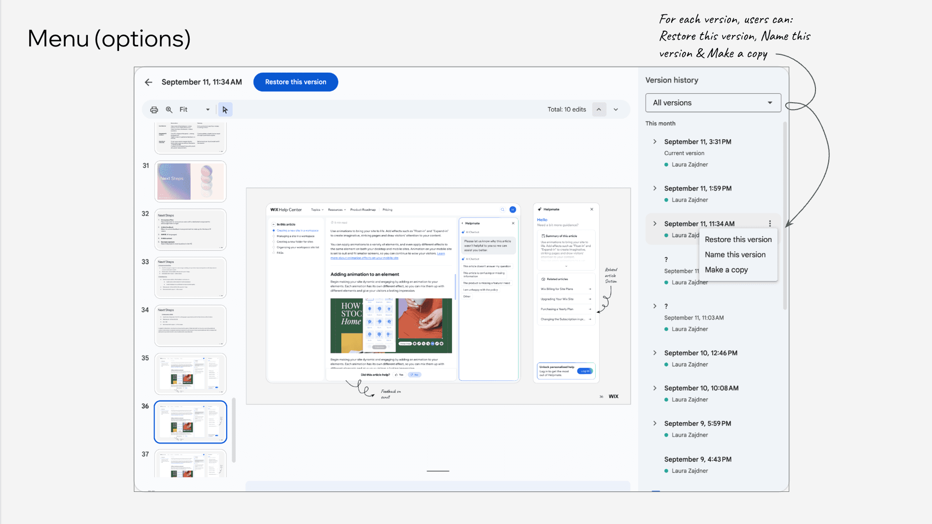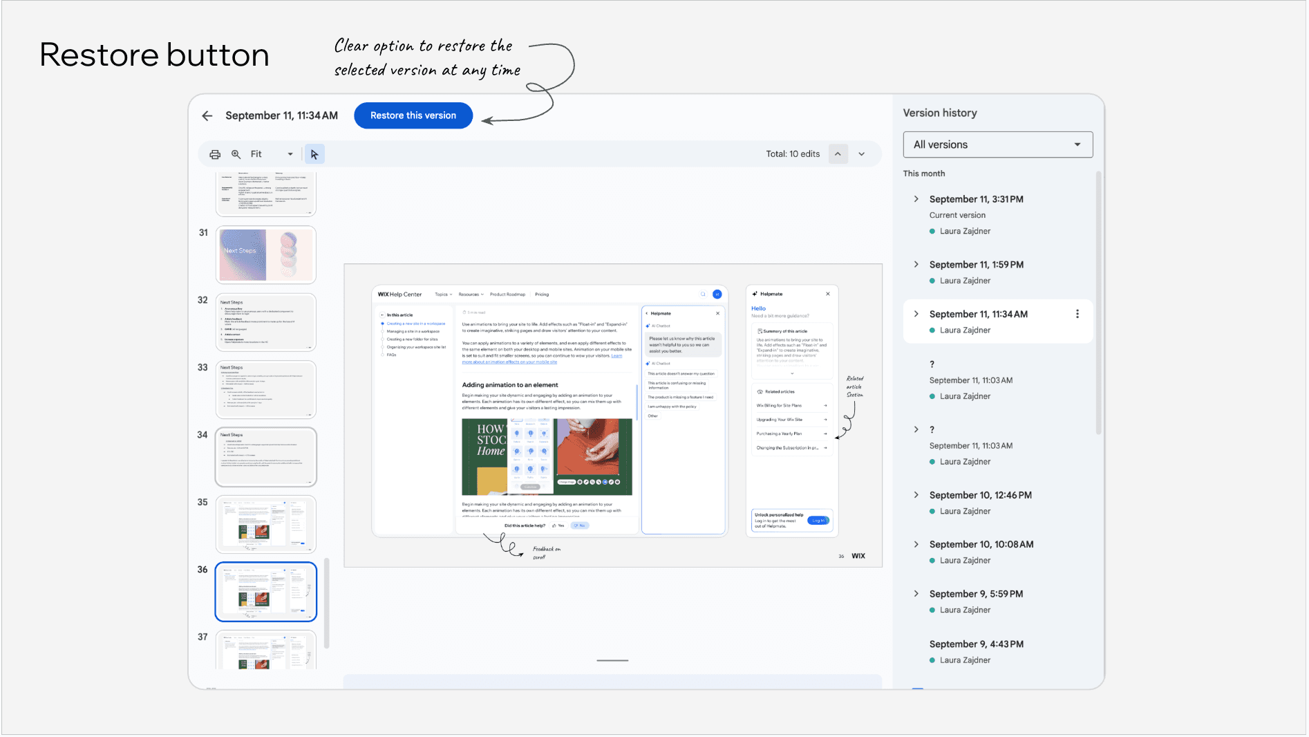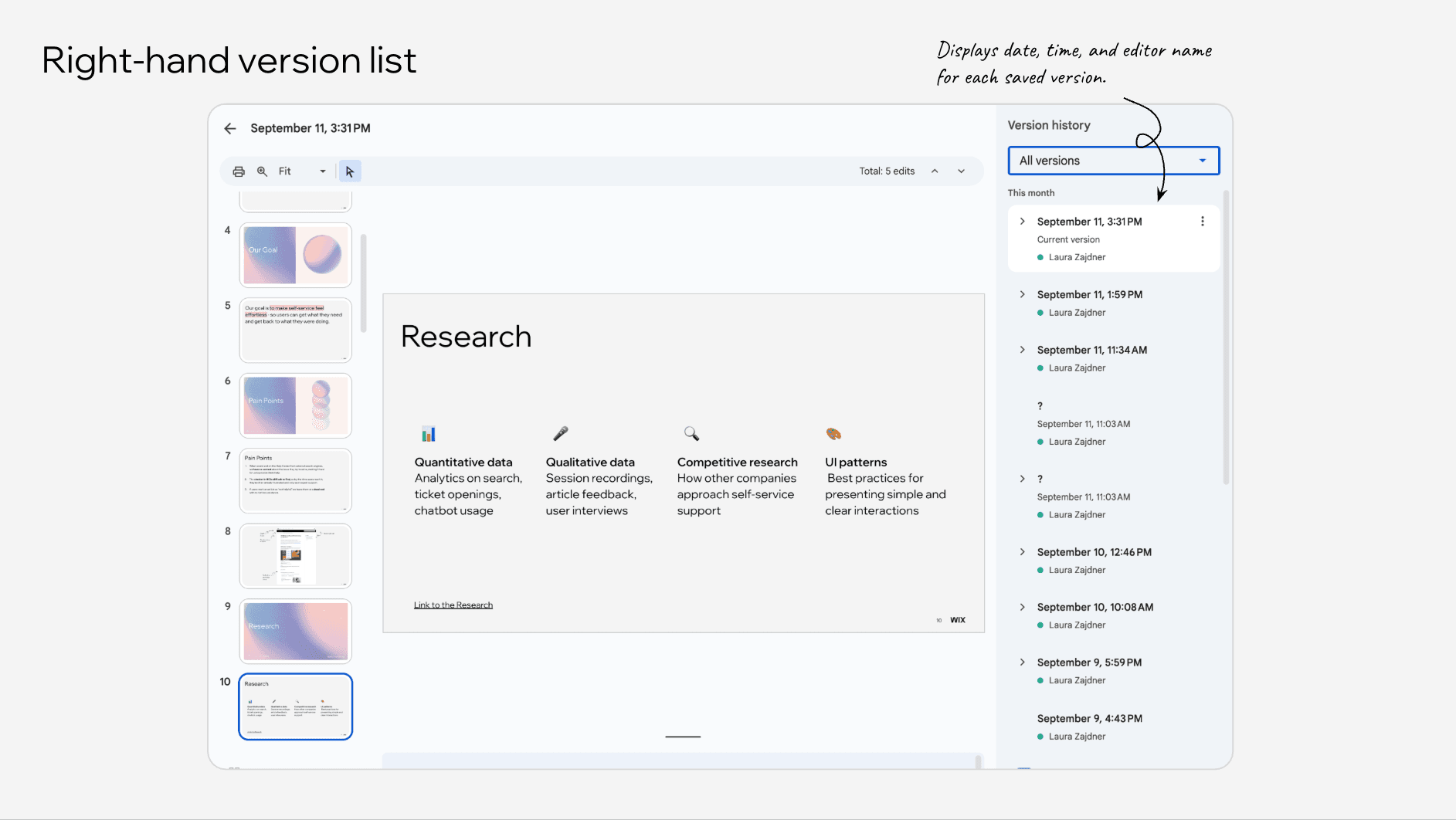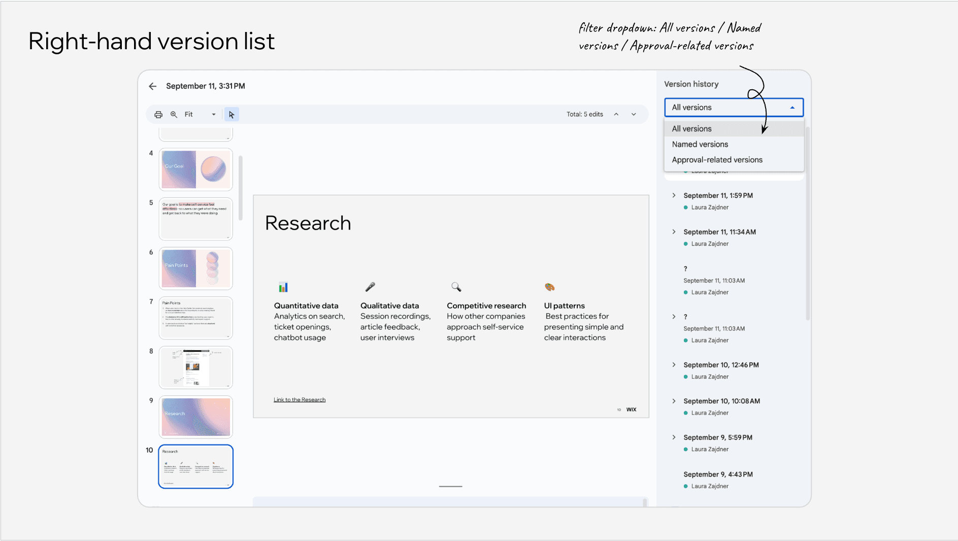 I redesigned Google's version history experience to improve clarity, scannability, and decision-making in high-density workflows.
