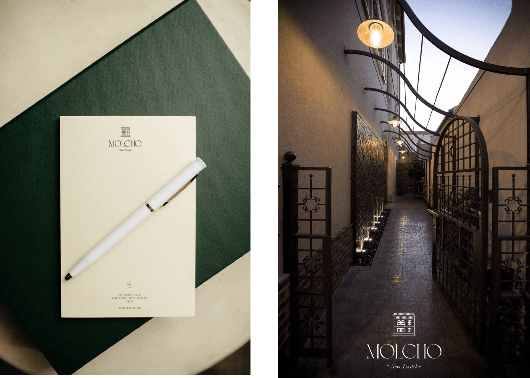 A logo for a high-end suite hotel, offering boutique hospitality in the atmosphere of old Tel Aviv, located in Neve Tzedek. A place with history from old Tel Aviv, luxurious yet understated, in a special location on a street of artists and boutiques.
