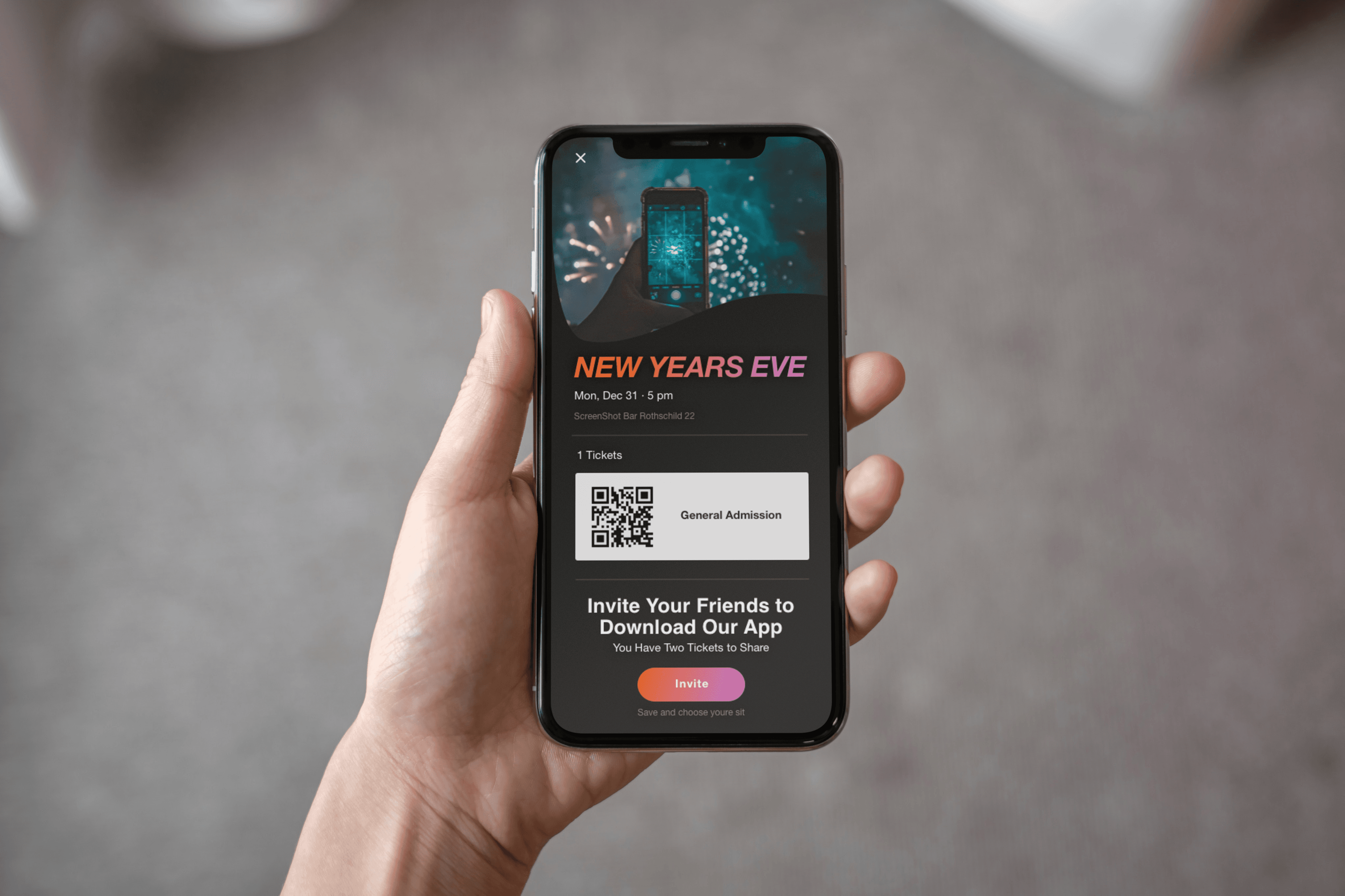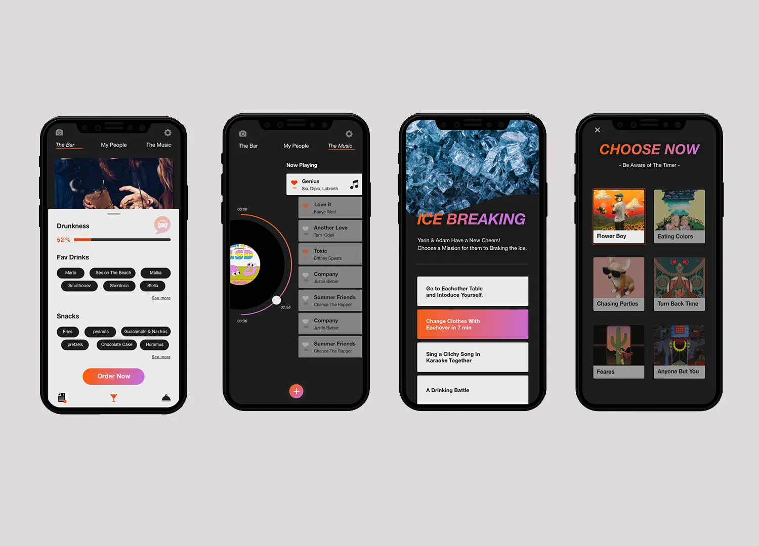 Screenshot is an interactive bar application, The app combines the experience of going out to a bar in synchronization between the smartphone and the visitor's activity in the bar. The bar is surrounded by screens that dynamically present what is going on in live broadcast. Through the application, the user stays up to date, constantly exposed to new experiences and acquaintances, can order food and drinks and be in the whole partner experience, in exchange for participation, the bar rewards the customers constantly.