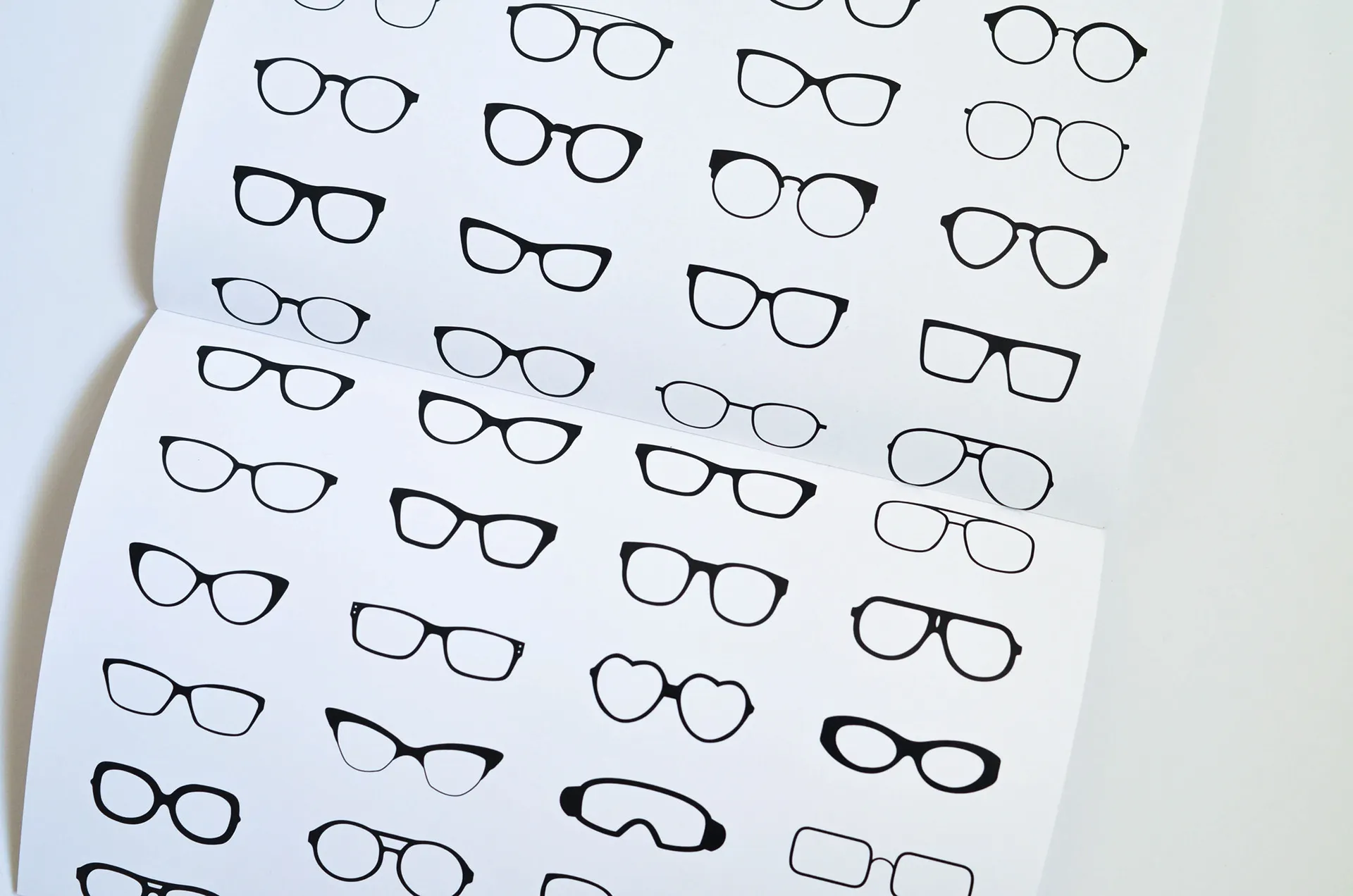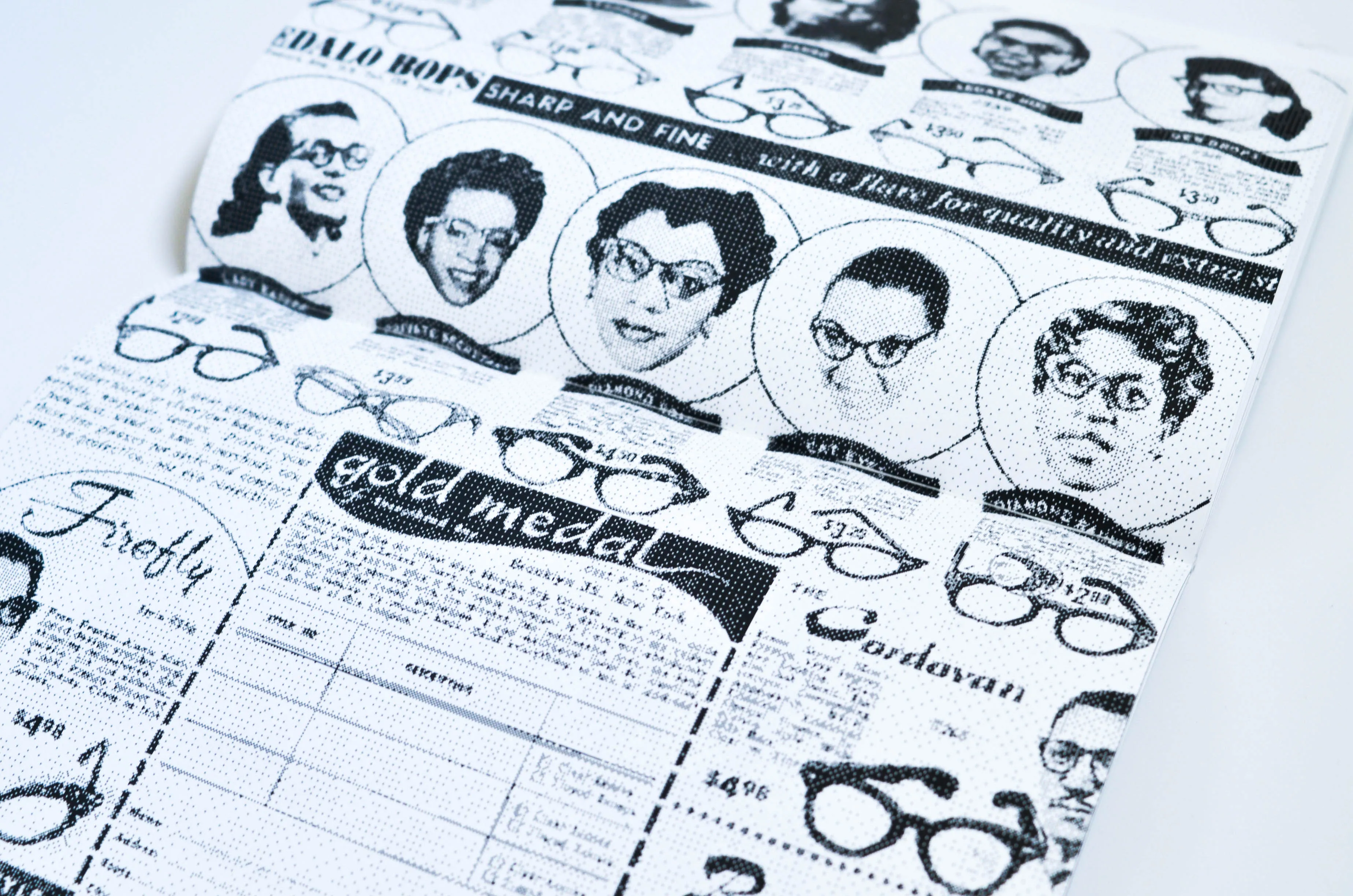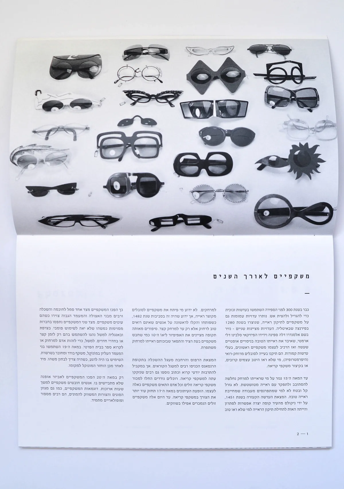 The catalog covers the changing of multiple designs throughout the years and gives us a glimpse to the product that transformed itself into a major fashion accessory. The catalog contains information about sight, vision, and observation, including a display of the types of glasses over the years, articles, and visual illusions.