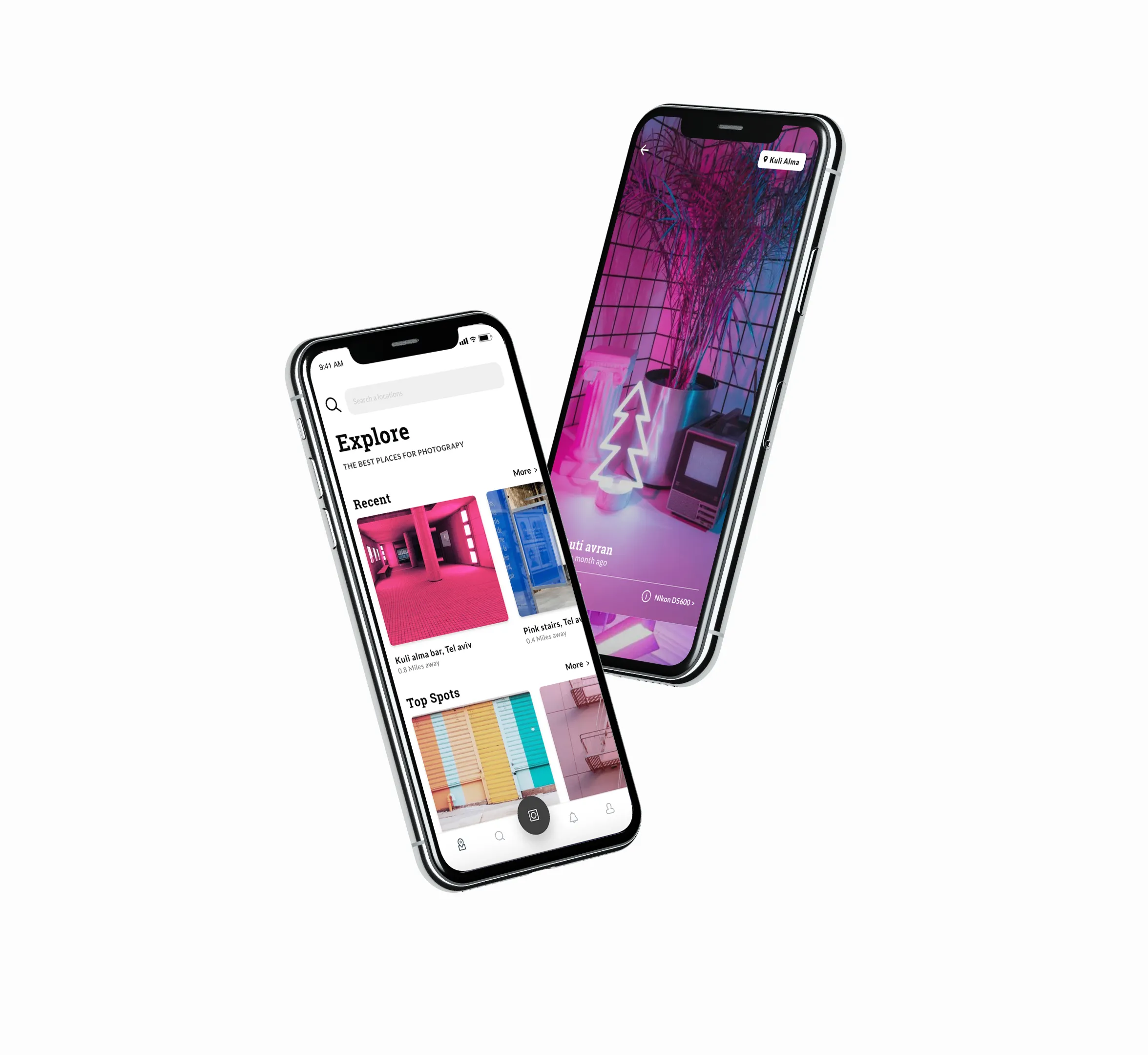 The app helps users discover beautiful, photogenic locations, tailored to their interests through a smart search engine with category filters.