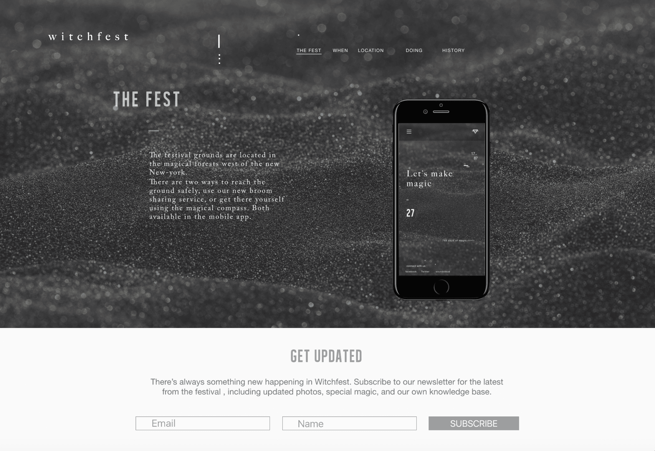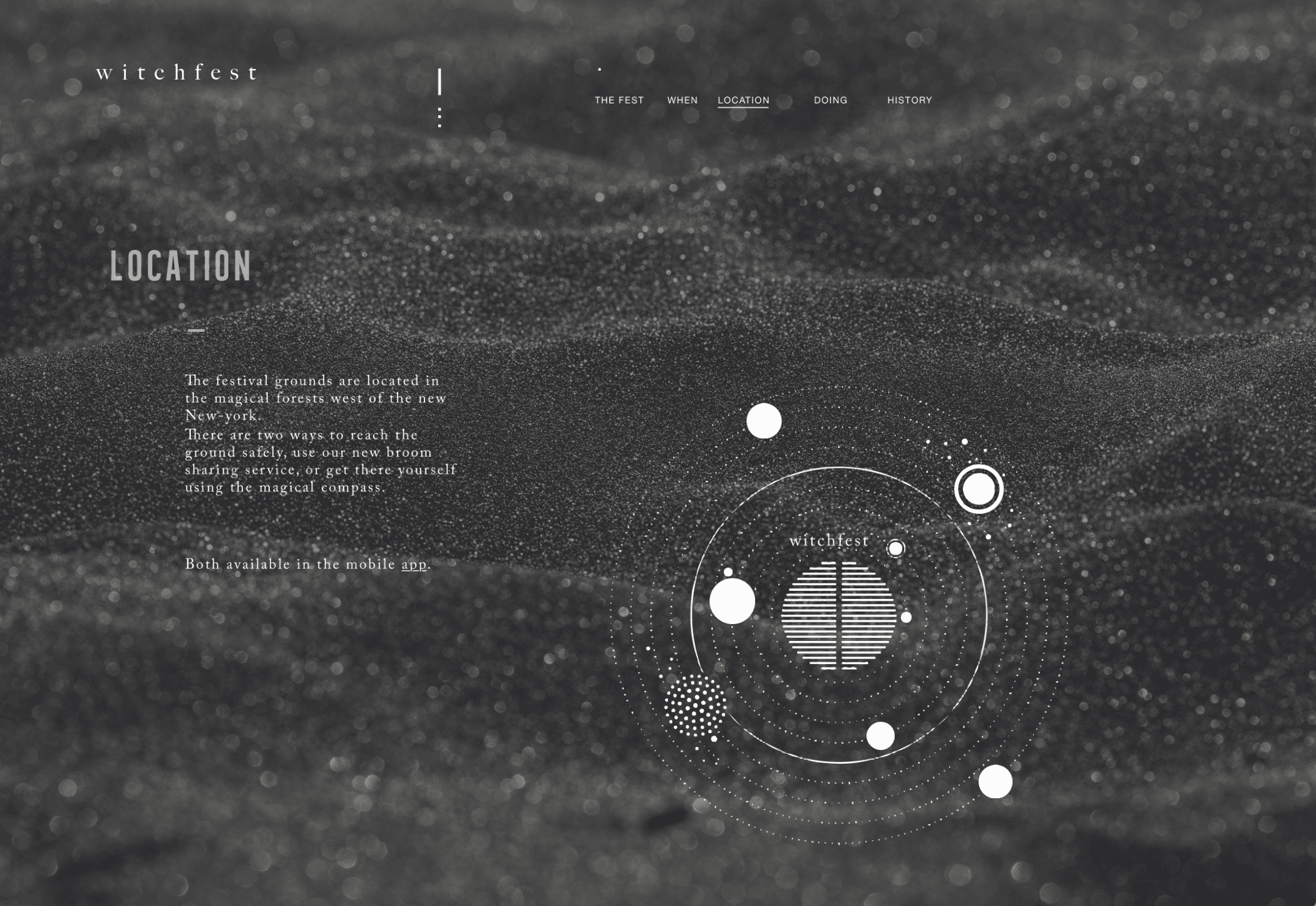 The responsive website invites visitors to explore event details in true ghastly style: from a celestial map guiding the way, to instructions on how to summon an Uber Broom, and even a way to send magical invitations to friends.